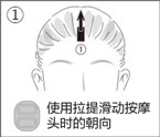 沿發際線向頭頂部滑動。發際線處按壓約5秒后沿箭頭方向滑動約5秒。